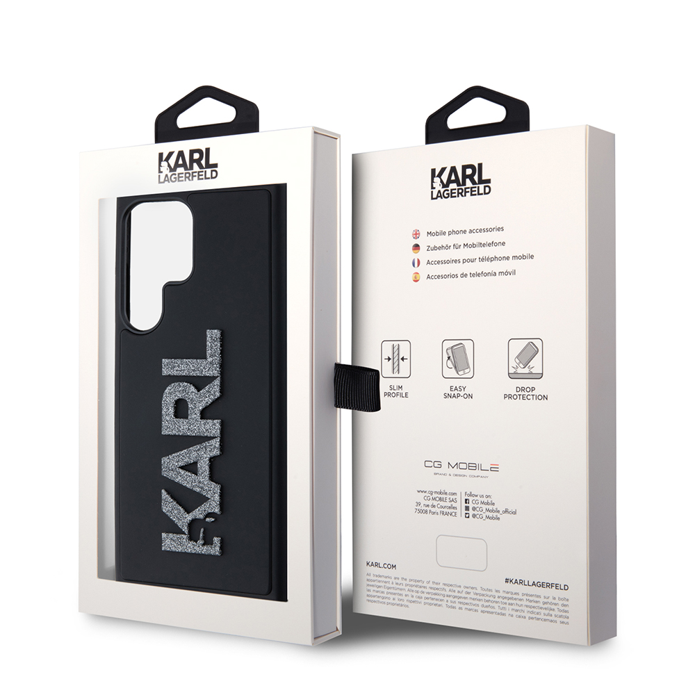 Karl Lagerfeld 3D Design Samsung Galaxy S23 Ultra černé třpytivé logoDopřejte svému Samsung Galaxy S23 Ultra jedinečný styl a spolehlivou ochranu s tímto originálním krytem od světoznámé značky Karl Lagerfeld. Tento obal je perfektní volbou pro ty, kteří hledají kombinaci luxusního vzhledu a praktické funkčnosti, jež podtrhne eleganci vašeho zařízení.