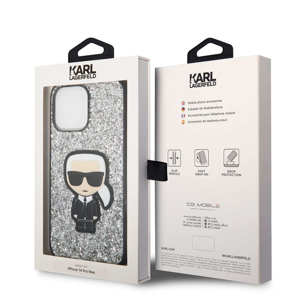 Karl Lagerfeld Hardcase Glitter iPhone 14 Pro Max stříbrné vločky IkonikPonořte se do světa luxusu a jedinečného stylu s ochranným krytem Karl Lagerfeld Hardcase Glitter, navrženým exkluzivně pro váš iPhone 14 Pro Max. Tento obal není jen ochranou, ale především módním doplňkem, který podtrhne vaši osobnost a dodá vašemu telefonu neobyčejný šmrnc.