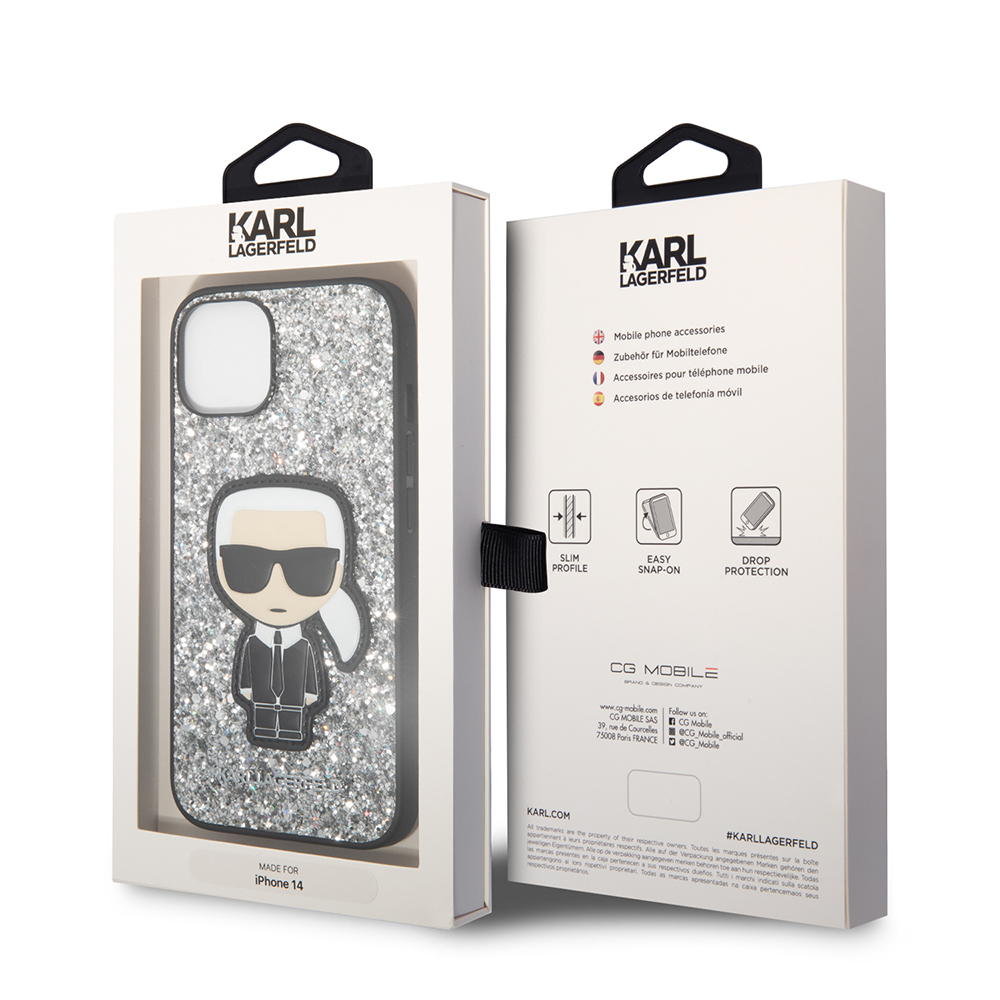 Karl Lagerfeld Hardcase Glitter iPhone 14 Stříbrné Flitry IkonikPředstavujeme exkluzivní ochranný kryt Karl Lagerfeld Hardcase Glitter, který dodá vašemu telefonu iPhone 14 nejen spolehlivou ochranu, ale i nepřehlédnutelný styl. Tento pevný kryt je navržen tak, aby dokonale obepínal váš přístroj a chránil jej před poškrábáním, nárazy a běžným opotřebením.