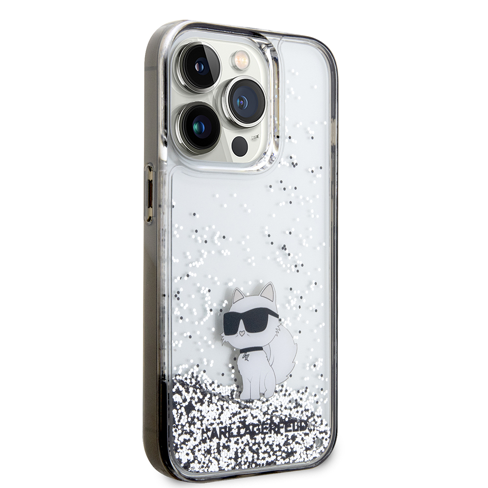 Kryt se pyšní fascinujícím designem Liquid Glitter, kde se stříbrné třpytky volně pohybují v průhledné kapalině, vytvářející tak dynamický a neustále se měnící vizuální zážitek. Dominantou je pak hravá silueta Choupette, legendární kočky Karla Lagerfelda, která dodává krytu nezaměnitelný a šarmantní punc. Stříbrná barva podtrhuje eleganci a moderní vzhled, zatímco precizní zpracování zajišťuje dokonalé padnutí a snadný přístup ke všem ovládacím prvkům.