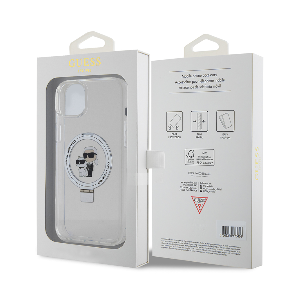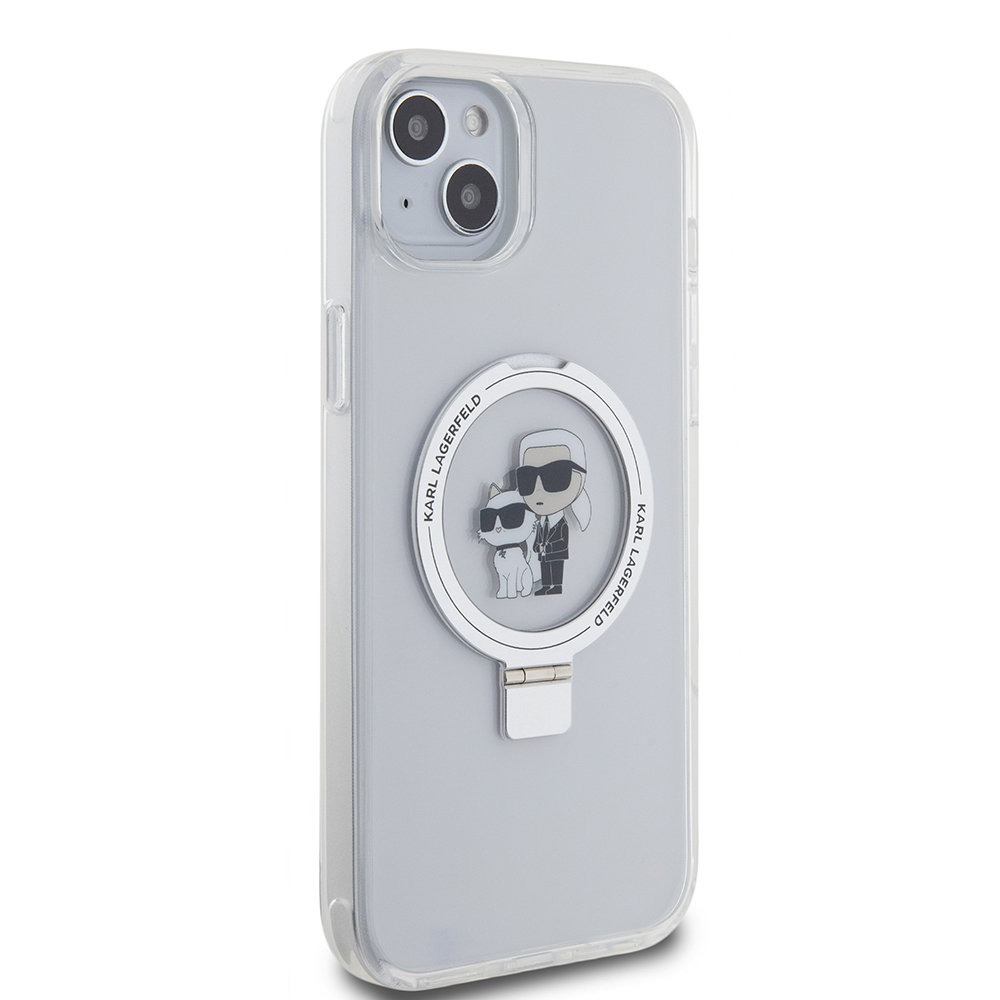 Karl Lagerfeld Hardcase Ring Stand MagSafe iPhone 15 Plus bílý Karl&ChoupetteDopřejte svému iPhonu 15 Plus nejen prvotřídní ochranu, ale i nezaměnitelný styl s exkluzivním krytem Karl Lagerfeld Hardcase Ring Stand MagSafe. Tento transparentní kryt v bílém provedení s ikonickým motivem Karla Lagerfelda a jeho milované kočky Choupette je dokonalou kombinací módy a funkčnosti.