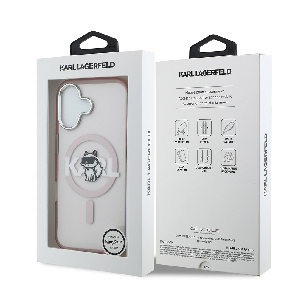 Kryt se pyšní jemným růžovým odstínem, který dodává telefonu sofistikovaný a moderní vzhled. Dominantou designu je ikonická skica kočky Choupette, múzy a věrné společnice Karla Lagerfelda, která je decentně umístěna na zadní straně. Tento detail dodává krytu jedinečný a rozpoznatelný charakter. Díky technologii IML (In-Mold Labeling) je povrch krytu vysoce odolný proti poškrábání a opotřebení, což zajišťuje dlouhotrvající krásu a ochranu. Integrovaná technologie MagSafe zaručuje perfektní kompatibilitu s bezdrátovým nabíjením a MagSafe příslušenstvím, což přináší pohodlí a funkčnost do vašeho každodenního života.