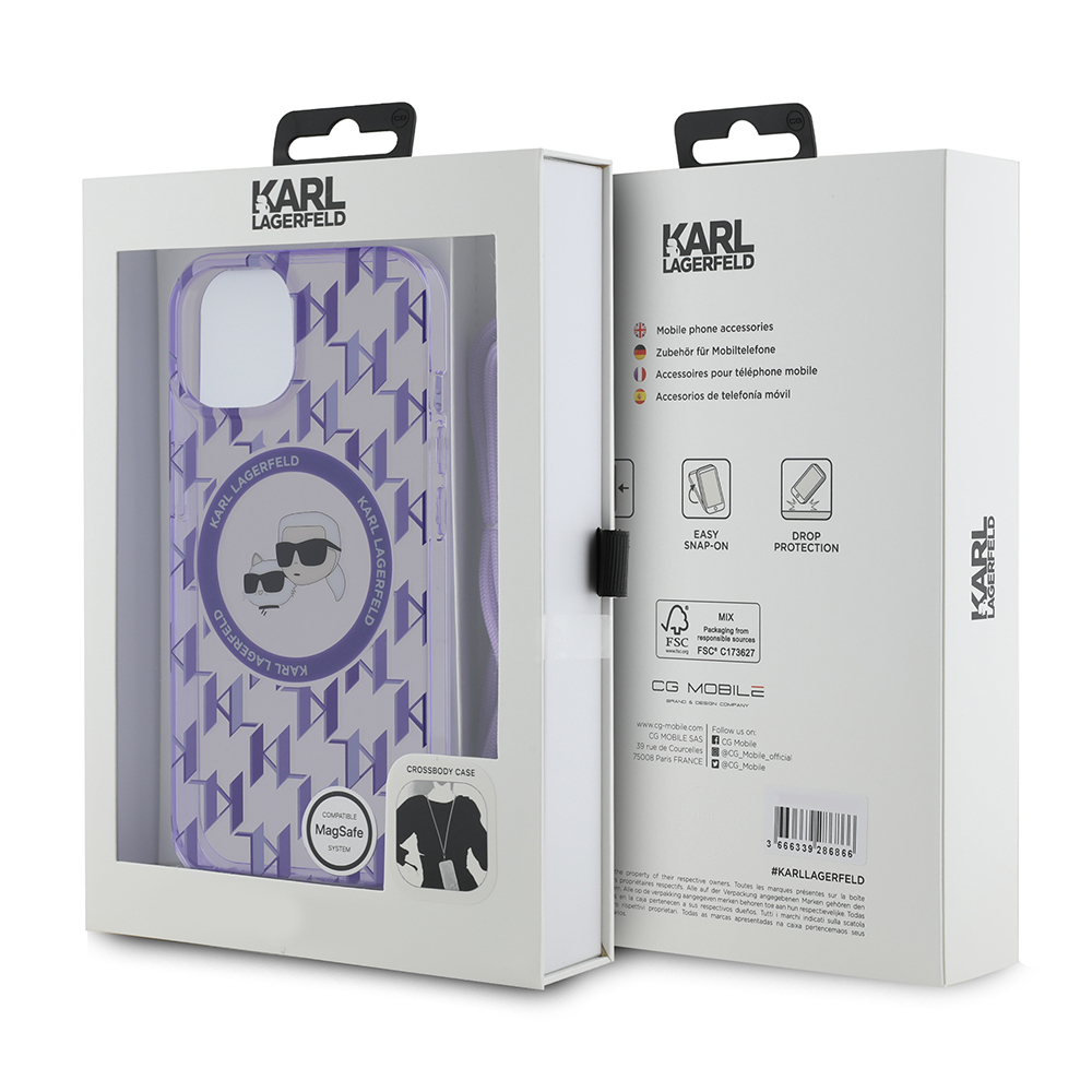 Karl Lagerfeld IML Crossbody MagSafe iPhone 15 fialová Mono Karl&ChoupettePředstavujeme exkluzivní ochranné pouzdro Karl Lagerfeld IML Crossbody MagSafe, které je dokonalou kombinací špičkové ochrany, moderního designu a praktické funkčnosti pro váš iPhone 15. Toto pouzdro je navrženo tak, aby nejen chránilo váš telefon před každodenním opotřebením, ale zároveň podtrhlo váš osobitý styl.