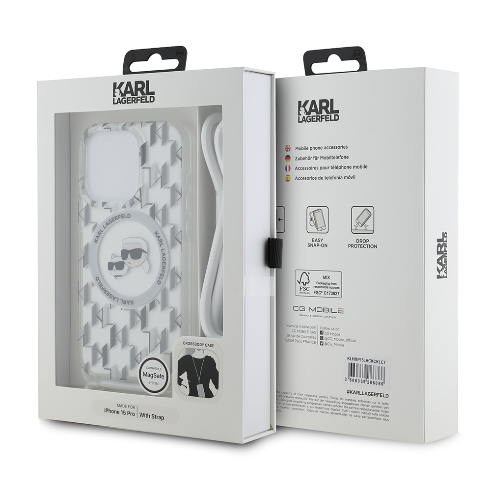 Karl Lagerfeld IML Crossbody MagSafe iPhone 15 Pro průhledný monogram Karl&Choupette HeadPředstavujeme exkluzivní kryt Karl Lagerfeld IML Crossbody MagSafe, který dokonale kombinuje luxusní design, praktičnost a spolehlivou ochranu pro váš iPhone 15 Pro. Tento stylový doplněk je ideální pro každého, kdo hledá eleganci a funkčnost v jednom.
