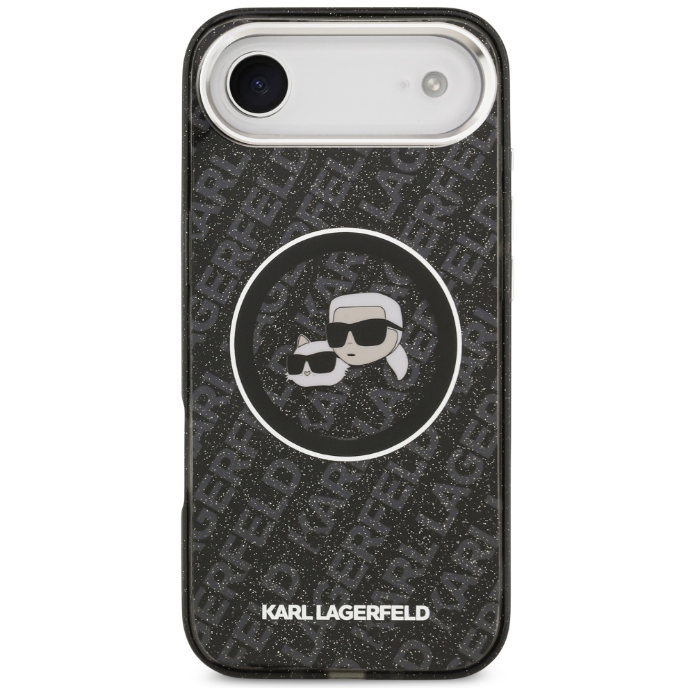 Kryt v elegantní černé barvě je vyroben technologií IML Glitter, která mu propůjčuje oslnivý třpytivý efekt, jenž se nádherně leskne při každém pohybu. Dominantním prvkem designu je ikonické logo K&C Heads, zobrazující stylizované hlavy Karla Lagerfelda a jeho milované kočky Choupette, které je umístěno na zadní straně a okamžitě upoutá pozornost. Díky integrované technologii MagSafe je zajištěna bezproblémová kompatibilita s veškerým MagSafe příslušenstvím, což umožňuje rychlé a stabilní bezdrátové nabíjení a snadné připevnění doplňků.