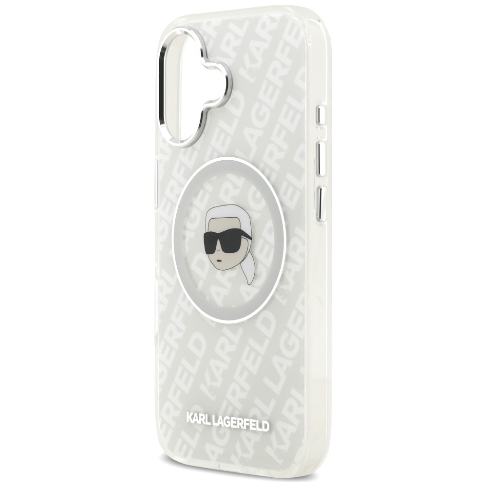 Design krytu je inspirován ikonickým stylem Karla Lagerfelda. Zadní strana je zdobena decentním, opakujícím se vzorem loga "KARL LAGERFELD", který dodává krytu sofistikovaný vzhled. Dominantním prvkem je pak kruhové logo s charakteristickou stylizovanou hlavou Karla Lagerfelda v brýlích, které je umístěno ve středu a zároveň slouží jako vizuální prvek pro MagSafe technologii. Díky integrovanému magnetickému kroužku je zajištěna plná kompatibilita s MagSafe příslušenstvím, což umožňuje rychlé a bezpečné bezdrátové nabíjení a snadné připojení doplňků. Zvýšené okraje kolem displeje a fotoaparátu poskytují dodatečnou ochranu proti poškrábání při položení telefonu na rovnou plochu.
