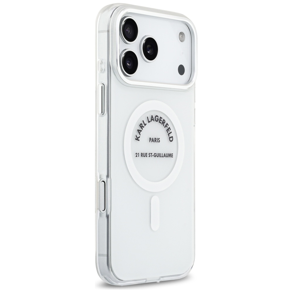 Karl Lagerfeld IML Karl RSG Logo MagSafe iPhone 17 Pro Max průhlednýPředstavujeme exkluzivní ochranný kryt Karl Lagerfeld IML Karl RSG Logo MagSafe, který je navržen tak, aby dokonale chránil váš iPhone 17 Pro Max a zároveň podtrhl jeho elegantní design. Tento průhledný kryt je ztělesněním luxusu a funkčnosti, ideální pro ty, kteří hledají spojení módy a špičkové ochrany.