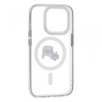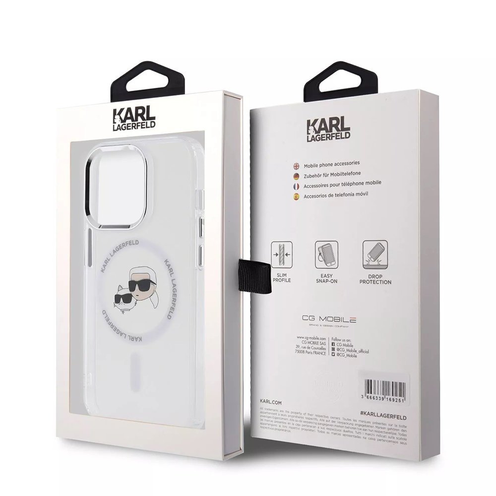 Design krytu se vyznačuje průhledným provedením, které nechává vyniknout originální barvu vašeho telefonu, doplněným o elegantní bílý MagSafe kruh s jemnými kovovými detaily kolem fotoaparátu, které podtrhují jeho prémiový vzhled. Dominantním prvkem je ikonický motiv hlav Karla Lagerfelda a jeho milované kočky Choupette, který je precizně zpracován a dodává krytu nezaměnitelný charakter. Díky technologii IML (In-Mould Labeling) je potisk odolný proti poškrábání a zachovává si svou brilanci po dlouhou dobu. Kryt je navržen tak, aby perfektně padl do ruky a zároveň zachoval tenký profil telefonu.