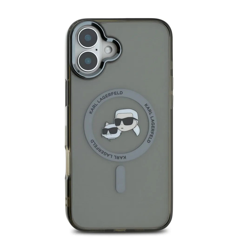 Kryt se pyšní průsvitným, lehce kouřovým stříbrným odstínem, který nechá vyniknout původní krásu vašeho telefonu, zatímco mu dodá sofistikovaný nádech. Dominantou zadní strany je ikonická kovová hlava Karla Lagerfelda a jeho milované kočky Choupette, obě s charakteristickými slunečními brýlemi, umístěná v centru. Tento detail je obklopen precizně integrovaným MagSafe kroužkem, který zajišťuje perfektní kompatibilitu s bezdrátovým nabíjením a MagSafe příslušenstvím. Materiál krytu je navržen pro odolnost proti pádům a zároveň si zachovává štíhlý profil a nízkou hmotnost, což zaručuje pohodlné držení a snadnou manipulaci. Přesné výřezy pro fotoaparát a porty, stejně jako kryté tlačítka, zajišťují plnou funkčnost telefonu bez kompromisů.