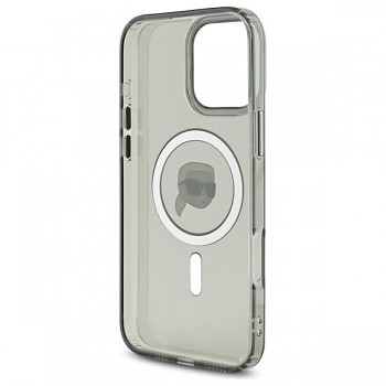 Kryt se pyšní průhledným provedením s kouřovým nádechem, které nechává vyniknout originální design vašeho telefonu. Dominantním prvkem je kovová hlava Karla Lagerfelda, umístěná ve středu zadní strany, která je obklopena elegantním MagSafe kroužkem s nápisem "KARL LAGERFELD". Tento detail dodává krytu punc luxusu a okamžitě upoutá pozornost. Precizní zpracování a tenký profil zajišťují, že telefon zůstane lehký a pohodlný v ruce, aniž by ztratil svůj elegantní vzhled.