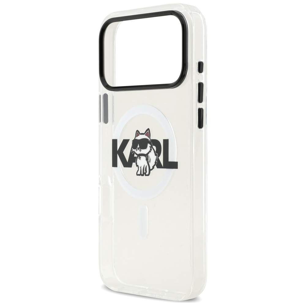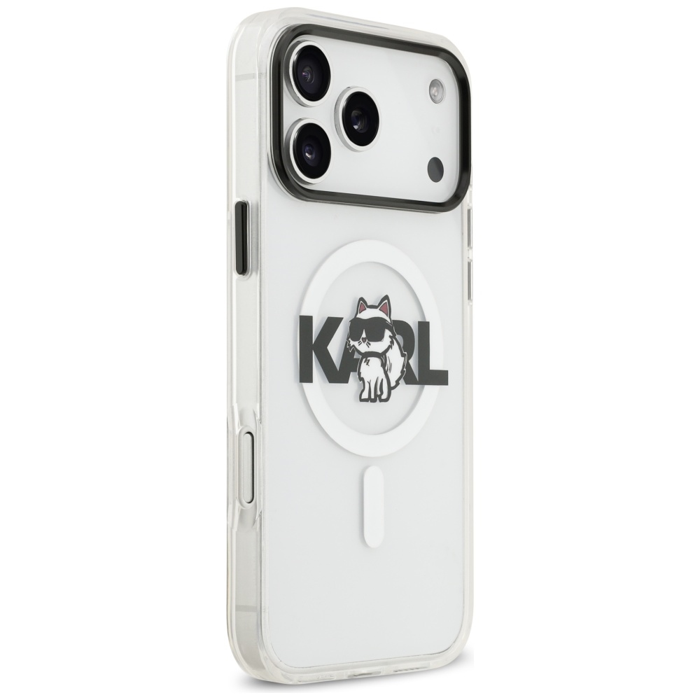 Kryt se pyšní průhledným designem s jemným šedým nádechem, který nechává vyniknout originální barvu vašeho telefonu. Dominantním prvkem je ikonické logo KARL a hravá ilustrace kočky Choupette, neodmyslitelné múzy Karla Lagerfelda, s charakteristickými slunečními brýlemi. Integrovaný MagSafe kroužek v bílé barvě zajišťuje bezproblémovou kompatibilitu s MagSafe příslušenstvím a rychlé bezdrátové nabíjení. Materiál krytu je navržen pro odolnost proti pádům a zároveň si zachovává štíhlý profil, který nepřidává telefonu zbytečný objem. Přesné výřezy pro fotoaparát a porty, spolu s krytými tlačítky, zaručují plnou funkčnost a pohodlné držení.