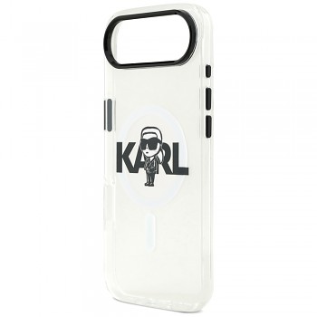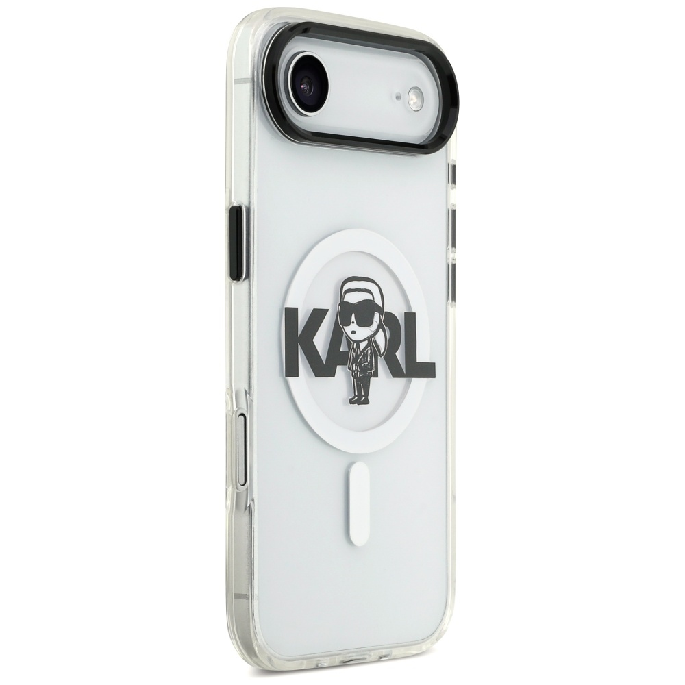 Kryt je vyroben s technologií IML (In-Mould Labeling), která zajišťuje, že design je trvale a precizně integrován do materiálu, což zaručuje jeho dlouhou životnost a odolnost proti opotřebení. Jeho průhledné provedení nechá vyniknout originální barvu vašeho telefonu, zatímco decentní sketch logo Karla Lagerfelda dodává krytu nezaměnitelný punc luxusu a originality. Díky integrované technologii MagSafe je zajištěna perfektní kompatibilita s bezdrátovým nabíjením a dalším MagSafe příslušenstvím, což zaručuje snadné a bezpečné připojení. Kryt je navržen tak, aby poskytoval maximální ochranu proti pádům, poškrábání a nečistotám, aniž by přidával zbytečný objem.