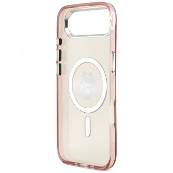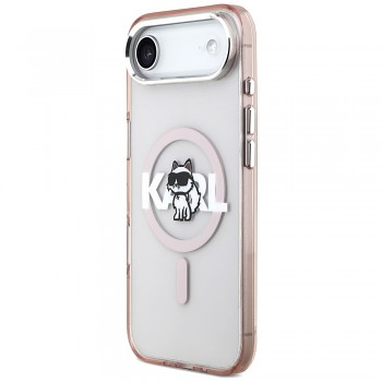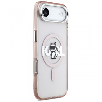 Kryt se pyšní průhledným provedením s elegantními růžovými okraji, které podtrhují sofistikovaný vzhled vašeho telefonu. Dominantním prvkem je ikonická kočka Choupette, věrná společnice Karla Lagerfelda, ztvárněná ve stylové skice s brýlemi. Za ní je výrazně umístěn nápis "KARL", což dodává krytu osobitý a rozpoznatelný charakter. Integrovaný růžový MagSafe kroužek zajišťuje bezproblémovou kompatibilitu s MagSafe příslušenstvím, což umožňuje rychlé a stabilní bezdrátové nabíjení a snadné připojení dalších doplňků. Díky technologii IML (In-Mold Labeling) je design vlisován přímo do materiálu, což zaručuje jeho dlouhou životnost a odolnost proti poškrábání a opotřebení. Kryt je vyroben z kvalitního a odolného materiálu, který poskytuje spolehlivou ochranu proti pádům, poškrábání a nečistotám, aniž by přidával zbytečný objem.