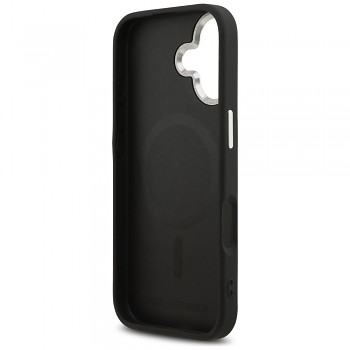 Kryt je plně kompatibilní s technologií MagSafe, což umožňuje snadné a bezpečné přichycení MagSafe příslušenství a rychlé bezdrátové nabíjení. Integrovaný MagSafe kroužek je elegantně zvýrazněn a nese nápis "KARL LAGERFELD", což podtrhuje autentičnost a prémiovost produktu. Přesné výřezy pro fotoaparát, porty a tlačítka zajišťují plnou funkčnost telefonu bez nutnosti kryt sundávat. Tlačítka jsou navíc stříbrná, což vytváří elegantní kontrast s černou kůží. Kryt poskytuje ochranu proti pádům a zároveň si zachovává štíhlý profil a nízkou hmotnost. Vnitřní strana krytu je opatřena jemnou podšívkou, která chrání záda telefonu před poškrábáním.