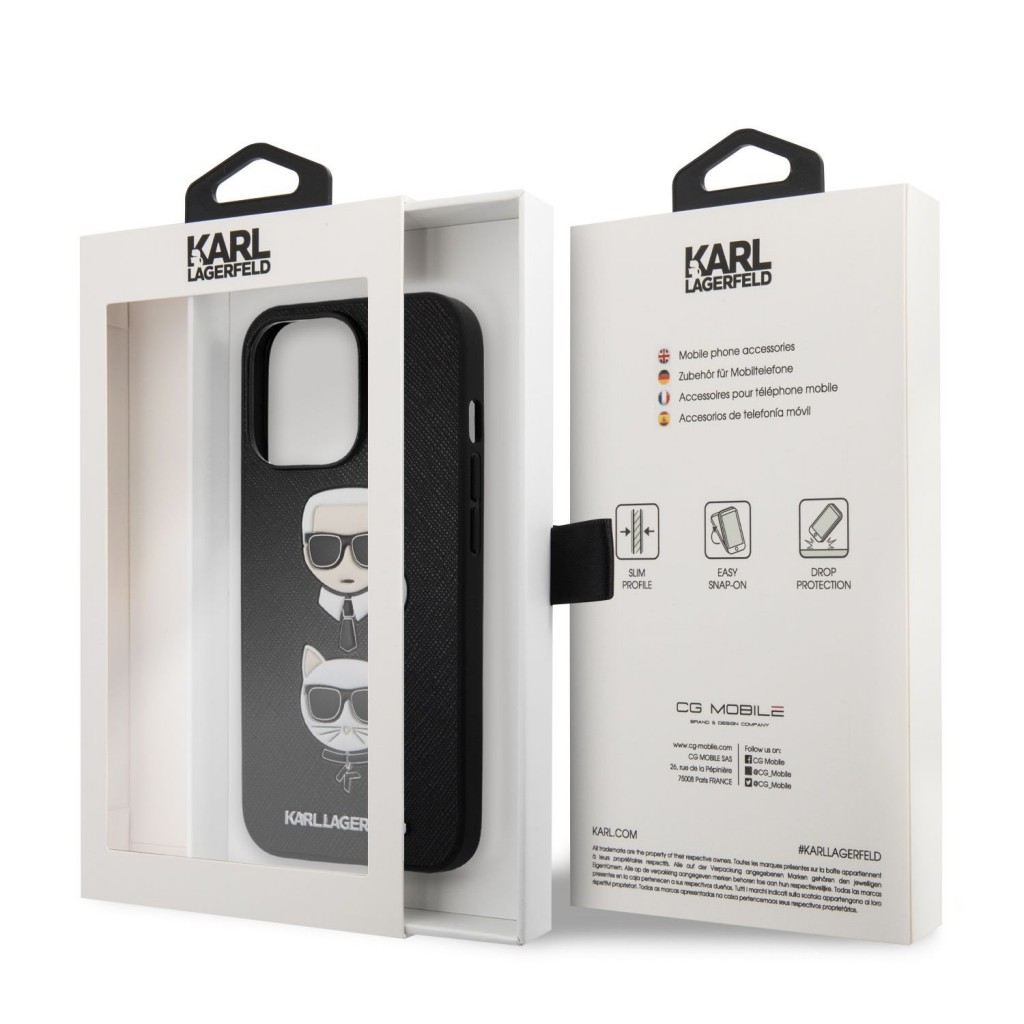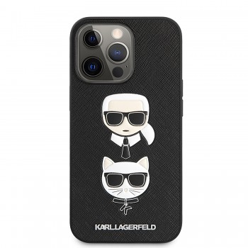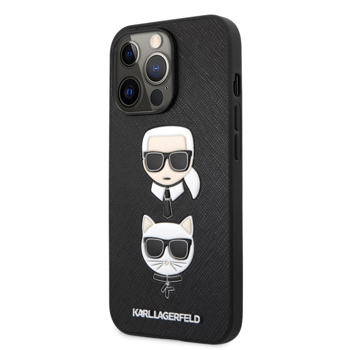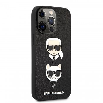 Karl Lagerfeld PU Saffiano Karl and Choupette Heads Kryt pro iPhone 13 Pro Max Black