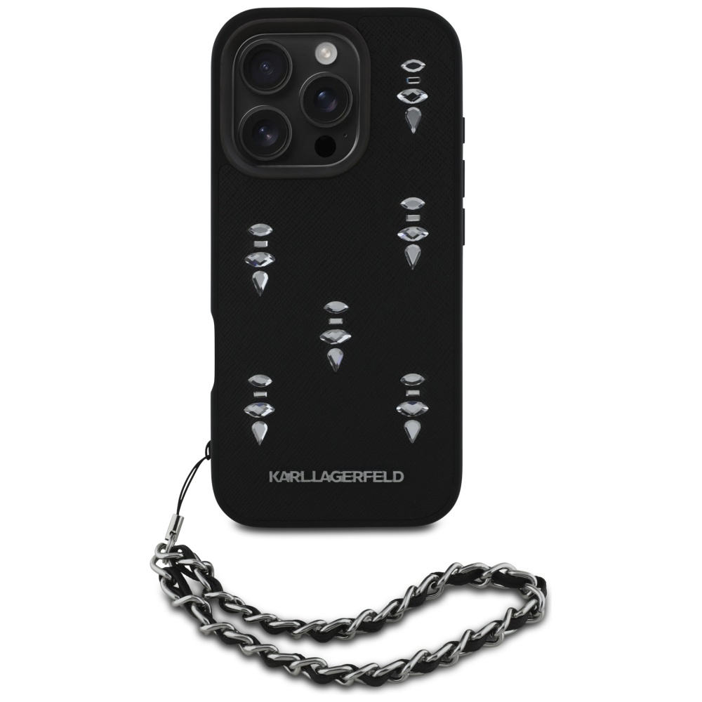 Design krytu je inspirován ikonickým stylem Karla Lagerfelda. Povrch je zpracován v oblíbené Saffiano textuře, která je známá svou odolností proti poškrábání a otiskům prstů, a zároveň dodává krytu luxusní vzhled a příjemný pocit na dotek. Dominantním prvkem je decentní, avšak výrazné logo Karla Lagerfelda, které je doplněno třpytivými krystaly a elegantním přívěskem (charmem), dodávajícím celku hravý a šik nádech. Přesné výřezy zajišťují snadný přístup ke všem tlačítkům a portům, zatímco zvýšené okraje chrání displej a fotoaparát před poškozením.