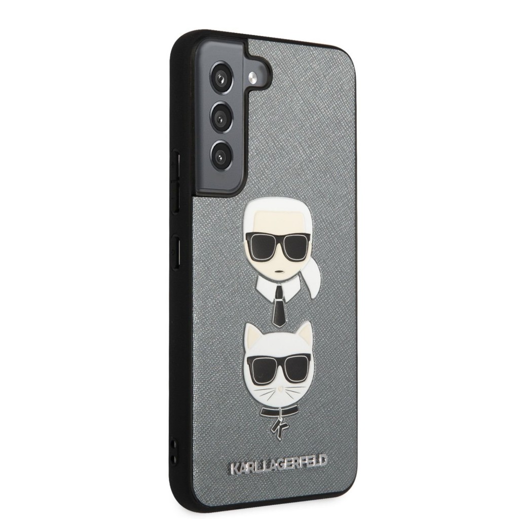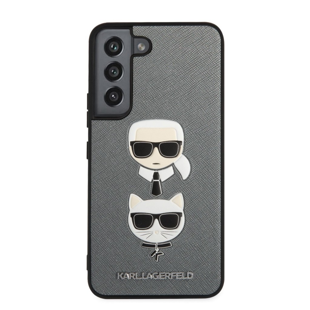 Karl Lagerfeld Saffiano K&C Heads Kryt pro Samsung Galaxy S22 Silver