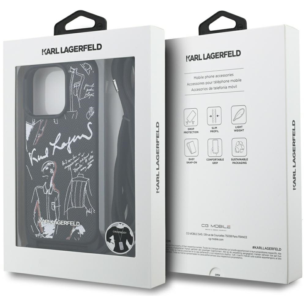 Design krytu je promyšlen do posledního detailu. Hluboká černá barva je doplněna ikonickým logem Karla Lagerfelda, které decentně zdobí zadní stranu a okamžitě odkazuje na prestižní módní dům. Integrovaná technologie MagSafe zajišťuje bezproblémové a rychlé bezdrátové nabíjení a kompatibilitu s MagSafe příslušenstvím. Nejvýraznějším prvkem je však odnímatelný a nastavitelný crossbody popruh, který vám umožní nosit telefon pohodlně přes rameno nebo křížem přes tělo, a mít tak ruce volné a telefon vždy po ruce.