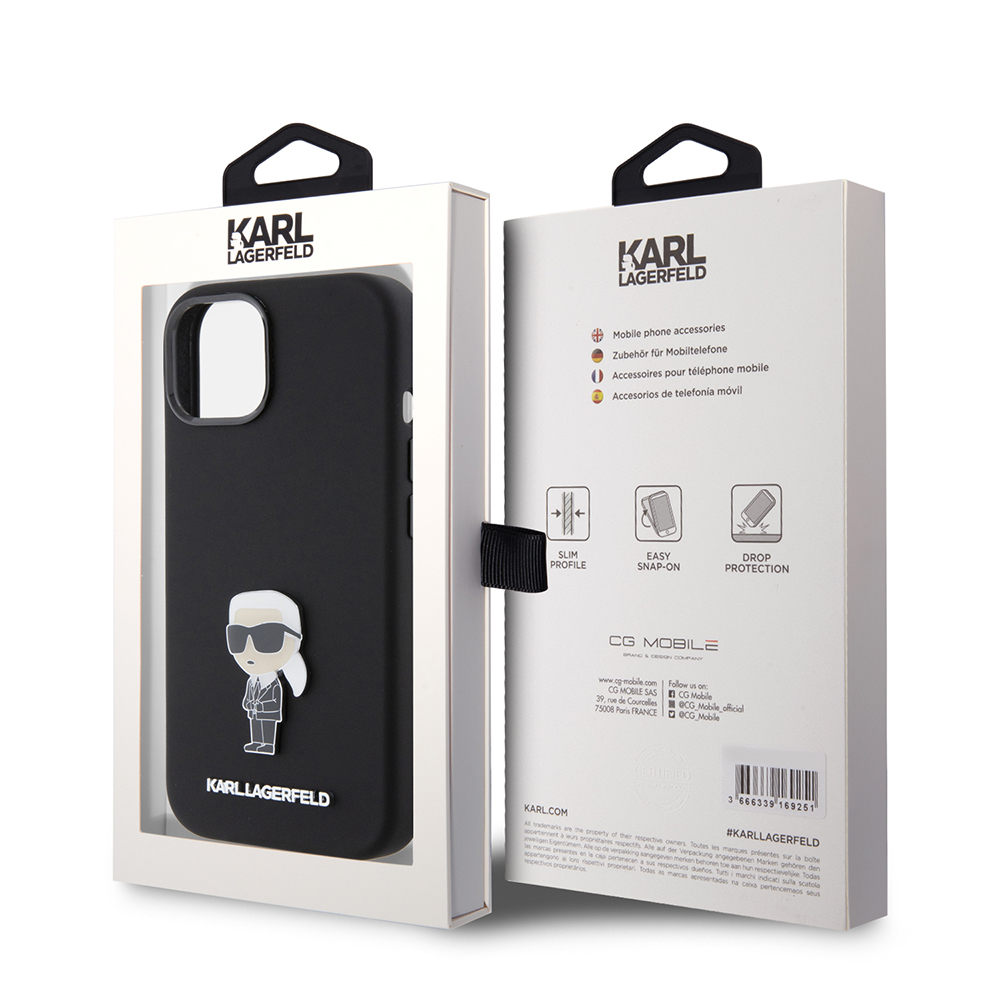 Kryt je vyroben z vysoce kvalitního silikonu, který je příjemný na dotek a zajišťuje pevný úchop. Jeho hladký povrch a precizní zpracování dokonale obepínají křivky vašeho telefonu. Dominantou designu je ikonický kovový pin s vyobrazením samotného Karla Lagerfelda, který dodává krytu punc originality a exkluzivity. Spodní část krytu zdobí decentní nápis KARL LAGERFELD, podtrhující příslušnost k prestižní značce. Kryt se pyšní štíhlým profilem, snadnou instalací a poskytuje spolehlivou ochranu proti pádům a poškrábání.