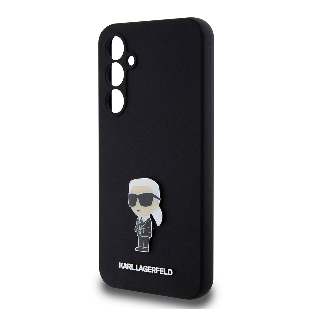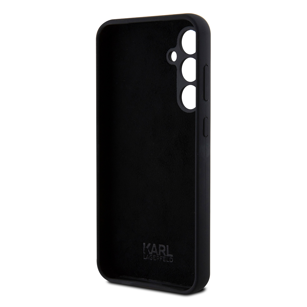 Kryt se pyšní minimalistickým, avšak nepřehlédnutelným designem. Jeho povrch je vyroben z jemného silikonu, který je příjemný na dotek a zajišťuje pevný úchop, čímž minimalizuje riziko vyklouznutí telefonu z ruky. Dominantou zadní strany je ikonický kovový pin s vyobrazením samotného Karla Lagerfelda, který dodává krytu osobitý a rozpoznatelný charakter. Pod ním je decentně umístěno logo KARL LAGERFELD, které podtrhuje exkluzivitu produktu. Přesné výřezy pro fotoaparát, ovládací tlačítka a konektory zajišťují plnou funkčnost telefonu bez nutnosti kryt sundávat. Kryt je navržen pro ochranu proti pádu, což zaručuje bezpečí vašeho zařízení.