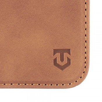 Pouzdro je vyrobeno z vysoce kvalitní PU kůže, která věrně imituje pravou kůži. Jeho povrch je jemně strukturovaný, což dodává na eleganci a zároveň zajišťuje příjemný pocit na dotek. Vzor v odstínu Mud Brown evokuje přírodní prvky a dodává pouzdru jedinečný vzhled, který se hodí k jakémukoli outfitu.