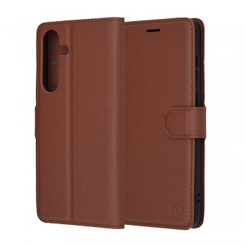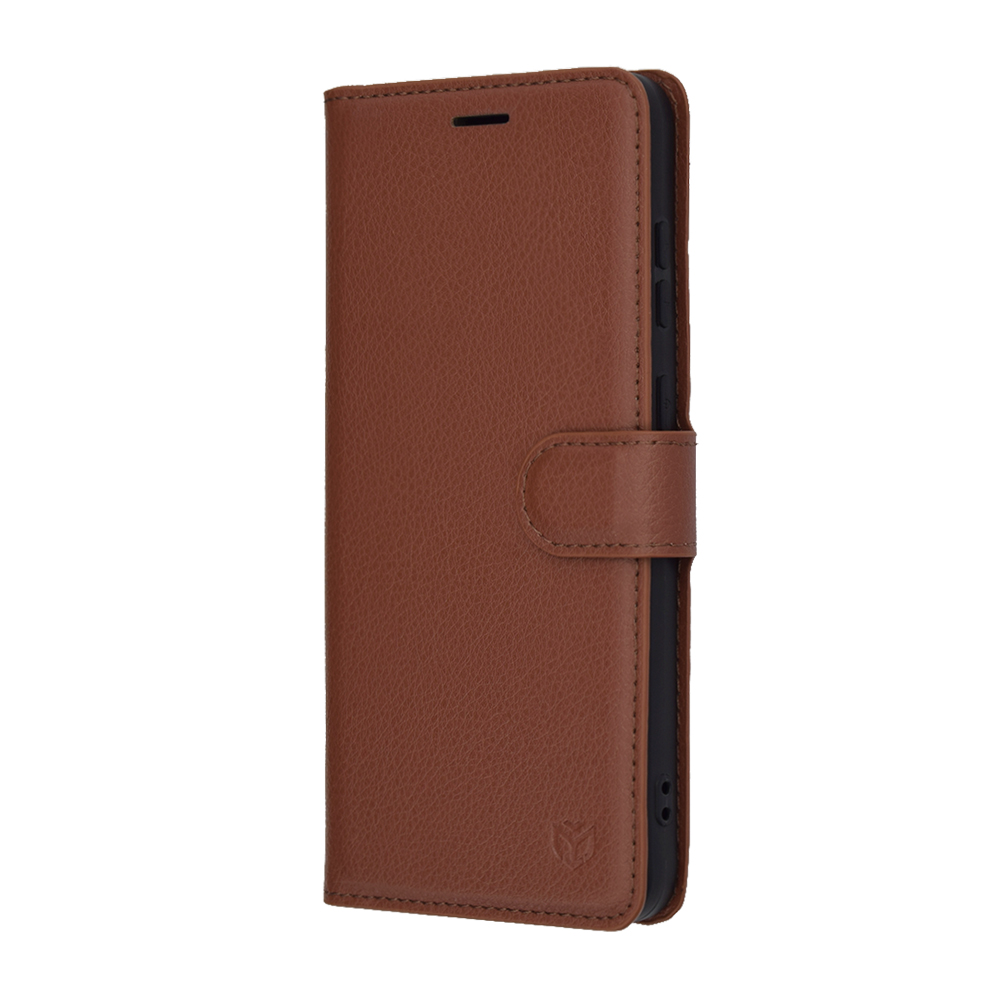 Pouzdro se pyšní luxusním hnědým odstínem a jemnou texturou, která imituje pravou kůži, dodávající vašemu telefonu sofistikovaný vzhled a příjemný pocit na dotek. Jeho "folio" design chrání telefon ze všech stran, včetně displeje, který je chráněn před poškrábáním a nárazy. Vnitřní strana pouzdra nabízí praktické přihrádky na platební karty (až tři) a větší kapsu na bankovky, což z něj činí ideálního společníka pro každodenní nošení. Telefon je bezpečně uchycen v precizně tvarované vnitřní vaničce z černého silikonu či TPU, která absorbuje nárazy. Pouzdro lze navíc snadno složit do praktického stojánku pro pohodlné sledování videí či videohovory. Uzavírání je řešeno pomocí diskrétního magnetického pásku, který zajišťuje, že pouzdro zůstane bezpečně zavřené. Všechny výřezy pro fotoaparát, reproduktory, nabíjecí port a tlačítka jsou přesně zpracovány, což zaručuje plnou funkčnost telefonu bez nutnosti vyjímání z pouzdra. Decentní logo značky Techsuit je elegantně vyraženo na přední straně pouzdra.