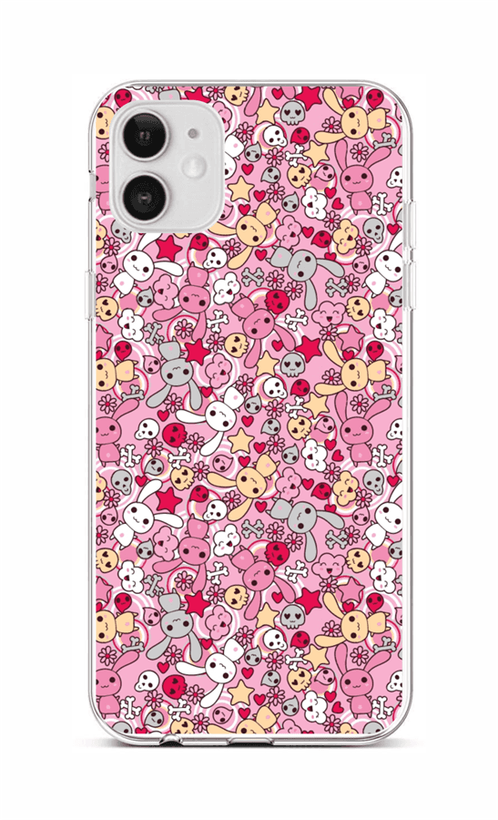 Zadní silikonový kryt na mobil iPhone 12 Pink BunniesObal mírně přesahuje přední hrany mobilu, takže když jej položíte displejem dolů, stále leží na pouzdru a neodře se.