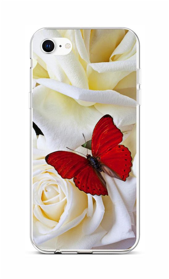Zadní silikonový kryt na mobil iPhone SE 2020 Červený motýlSilikonové obaly patří mezi nejoblíbenější ochranné kryty pro mobilní telefony. Originální motiv zajistí mobilu stylový vzhled a díky kvalitnímu zpracování také skvělou ochranu.