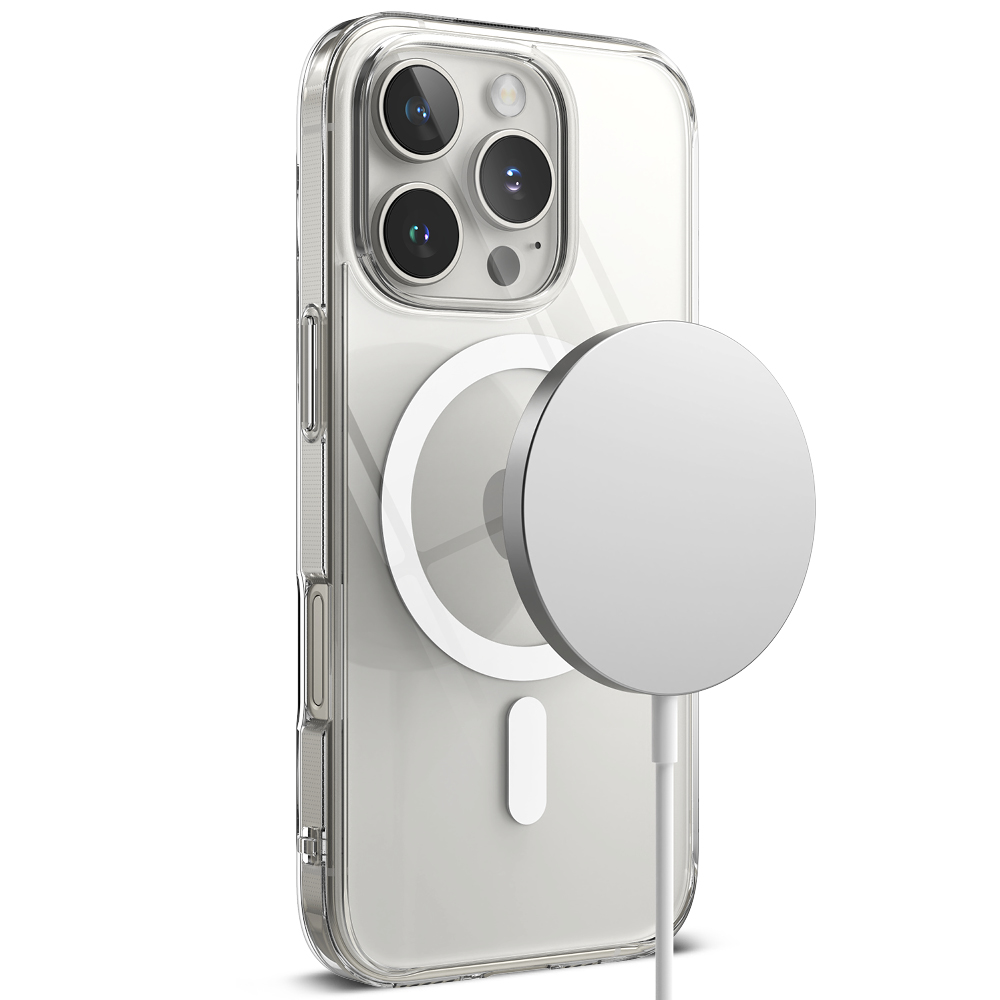 Kryt Ringke Fusion MagSafe se pyšní hybridní konstrukcí, která je vlajkovou lodí značky Ringke. Zadní strana je vyrobena z dokonale čirého a tvrdého polykarbonátu, který je odolný proti žloutnutí a poškrábání, čímž zajišťuje dlouhotrvající průzračnost. Flexibilní a nárazy pohlcující TPU rámeček efektivně chrání boky a rohy telefonu před pády a nárazy. Integrovaný MagSafe kroužek na zadní straně zajišťuje bezproblémovou kompatibilitu se všemi MagSafe příslušenstvím, od nabíječek po peněženky. Kryt je precizně tvarován s vyvýšenými okraji kolem displeje a fotoaparátu, což poskytuje dodatečnou ochranu proti poškrábání při položení na rovný povrch. Tlačítka jsou krytá, ale zůstávají plně funkční a citlivá. Na bocích krytu jsou navíc diskrétní integrované otvory QuikCatch, které umožňují snadné a bezpečné připevnění poutka nebo šňůrky.