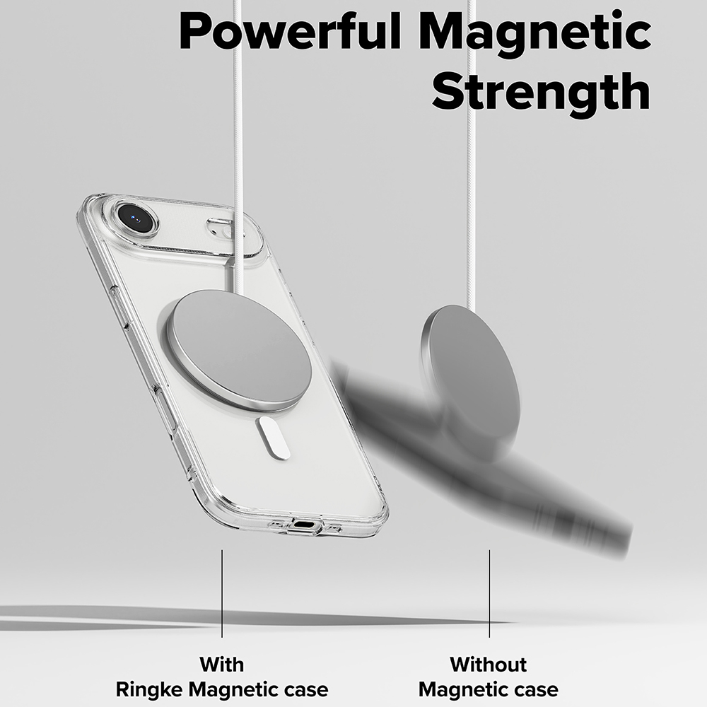 Kryt Ringke Fusion MagSafe se pyšní křišťálově čistým a minimalistickým designem, který nechává plně vyniknout krásu vašeho iPhonu 17 Air. Je vyroben z hybridních materiálů – pevná polykarbonátová zadní strana odolává poškrábání a žloutnutí, zatímco flexibilní TPU rámeček efektivně absorbuje nárazy a poskytuje zvýšenou ochranu rohů. Integrovaný MagSafe kroužek zajišťuje perfektní kompatibilitu se všemi MagSafe příslušenstvím, od bezdrátových nabíječek po peněženky a držáky, s výkonnou magnetickou silou pro bezpečné uchycení. Přesné výřezy pro porty, reproduktory a tlačítka zaručují snadný přístup a bezproblémové používání. Zvýšené okraje kolem displeje a fotoaparátu poskytují dodatečnou ochranu proti poškrábání při položení na rovné plochy.