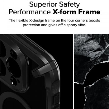 Kryt Ringke Fusion X MagSafe pro iPhone 16 v černé barvě představuje hybridní design, který je vlajkovou lodí řady Fusion. Zadní strana je tvořena dokonale čirým a tvrdým polykarbonátem, který je odolný proti žloutnutí a nechává vyniknout originální design vašeho telefonu, včetně loga Apple a MagSafe kroužku. Tento kroužek je viditelný a zajišťuje perfektní kompatibilitu s MagSafe příslušenstvím. Rámeček krytu je vyroben z flexibilního a nárazy pohlcujícího TPU materiálu v elegantní černé barvě, který poskytuje robustní ochranu proti pádům a nárazům. Zesílené rohy s výrazným texturovaným vzorem dodávají krytu futuristický a odolný vzhled a zároveň zvyšují ochranu nejzranitelnějších částí telefonu. Boční strany rámečku jsou opatřeny jemnou texturou pro lepší úchop, což minimalizuje riziko vyklouznutí telefonu z ruky. Všechny výřezy pro porty a tlačítka jsou precizně zpracované pro snadný přístup a bezproblémové používání. Nechybí ani unikátní prvek Ringke – integrované otvory pro poutko QuikCatch, které umožňují snadné a bezpečné připevnění řemínků nebo šňůrek přímo na kryt.