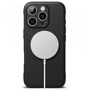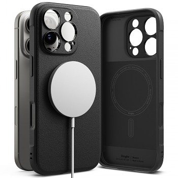 Kryt Ringke Onyx MagSafe se pyšní moderním a funkčním designem. Jeho povrch je opatřen jemnou texturou, která připomíná broušený kov, což zajišťuje nejen luxusní vzhled, ale také pevnější a jistější úchop v ruce. Díky tomu minimalizuje riziko vyklouznutí telefonu. Precizní výřezy pro fotoaparáty, porty a tlačítka zaručují plnou funkčnost a snadný přístup ke všem ovládacím prvkům. Zvýšené okraje kolem displeje a modulu fotoaparátu poskytují extra ochranu proti poškrábání při položení na rovné plochy. Integrovaný MagSafe kroužek zajišťuje bezproblémovou kompatibilitu s MagSafe příslušenstvím, což umožňuje rychlé a stabilní bezdrátové nabíjení a připojení dalších doplňků.