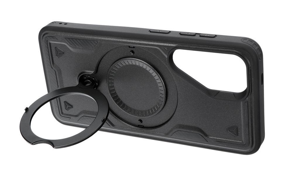 Na zadní straně je umístěn magnetický kroužek, který slouží nejen jako módní doplňek, ale také jako praktický stojánek.