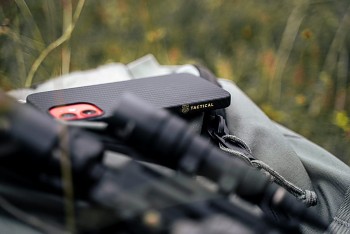 Vzhled krytu Tactical MagForce Aramid definuje technická elegance a precizní zpracování. Povrch pouzdra tvoří detailní textura tkaného aramidového vlákna v antracitově černé až šedé barvě, která vytváří moderní industriální dojem. Tato textura má sametově hladký povrch, který je velmi příjemný na dotek, ale zároveň plní důležitou funkci protiskluzové vrstvy, takže telefon pevně drží v dlani i v náročném terénu.