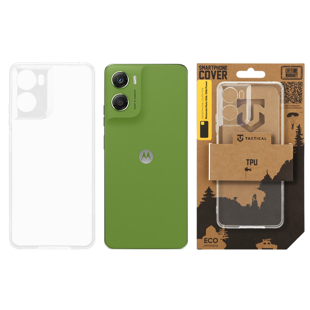 Kryt Tactical TPU pro Motorola Moto G06/G06 Power průhlednýFlexibilní obrana hran telefonu zachovávající jeho barvu. Výrobce do okrajů integroval vyvýšené prvky pro ochranu displeje. Skvělou vlastností je kompatibilita s bezdrátovými technologiemi nabíjení a výborný odvod tepla od baterie.