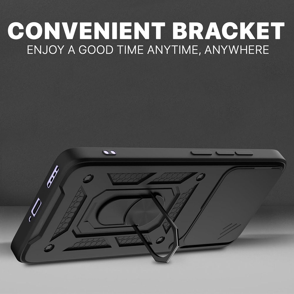 Kryt Techsuit CamShield Series - Realme 16 Pro ČernýTento kryt se vyznačuje taktickým a vysoce funkčním designem v černém barevném tónu. Nejvýraznějším prvkem celého provedení je posuvný panel zadního fotoaparátu s jemným žebrováním po stranách pro pevnější úchop.