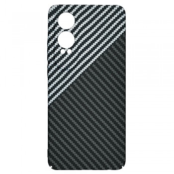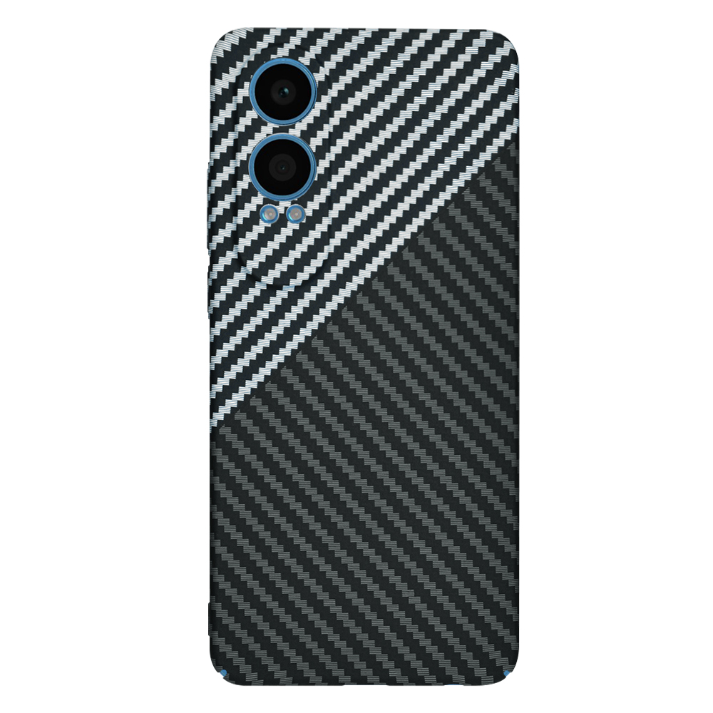 Kryt Techsuit Carbonite FiberShell se pyšní moderním a dynamickým designem. Zadní strana je rozdělena diagonální linií na dvě části, které se liší vzorem. Horní část, přibližně jedna třetina, má jemný vzor s tenkými bílými diagonálními pruhy na tmavém podkladu. Větší spodní část je pokryta klasickým vzorem uhlíkových vláken v tmavě šedé barvě, což dodává krytu sofistikovaný a sportovní vzhled. Tento design nejenže vypadá skvěle, ale také zlepšuje úchop a minimalizuje riziko vyklouznutí telefonu z ruky. Kryt je vyroben z pečlivě vybraných a zdravotně nezávadných materiálů, které zaručují dlouhou životnost a odolnost proti každodennímu opotřebení.