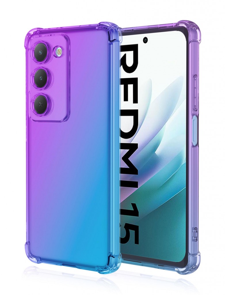 Zadní kryt TopQ na mobil Xiaomi Redmi 15 Shock duhový fialovo-modrýZadní obal, vyznačující se kvalitním zpracováním a originálním přechodem dvou barev. Je správnou volbou pro každého, kdo touží vdechnout svému telefonu nový, stylový vzhled.