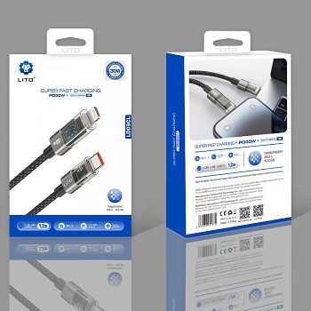 Lito Datový kabel LD09CL Lightning na Type-C 36W Rychlé nabíjení LED displej 1.2m černýPředstavujeme vám Lito datový kabel LD09CL, který kombinuje vysoký výkon s elegantním designem a praktickými funkcemi. Tento kabel je ideálním řešením pro každého, kdo hledá spolehlivé a rychlé nabíjení i synchronizaci dat pro svá zařízení.