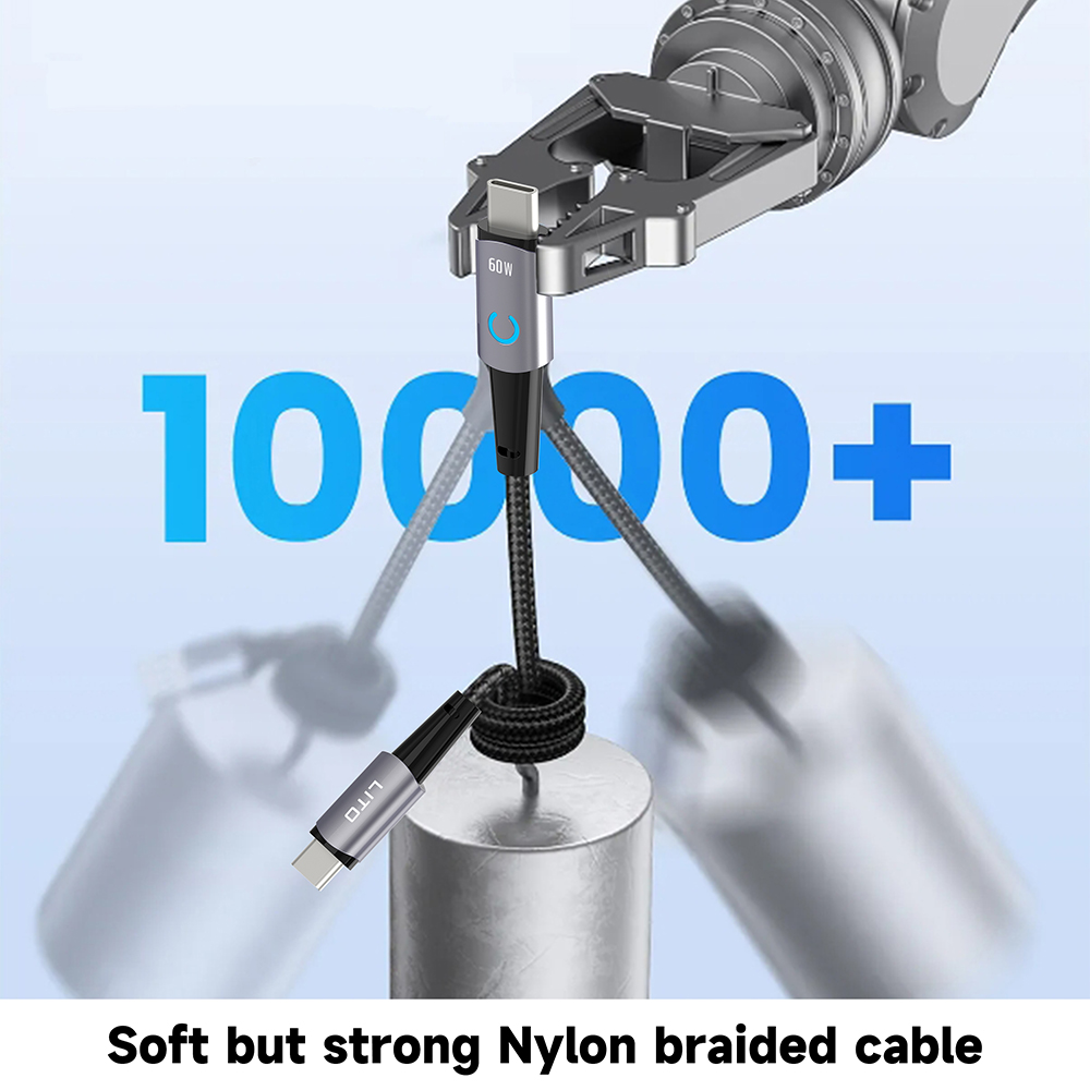 Kabel Lito LD10CL se pyšní minimalistickým a funkčním designem v klasické černé barvě, která se hodí ke každému zařízení. Díky délce 1 metru poskytuje dostatečnou flexibilitu pro pohodlné používání. Jednou z jeho nejvýraznějších vlastností je integrovaná LED dioda, která diskrétně signalizuje stav nabíjení, což přidává na uživatelském komfortu a moderním vzhledu. Kabel je vyroben z kvalitních materiálů, které zajišťují jeho dlouhou životnost a odolnost proti běžnému opotřebení, zamotání a ohýbání.