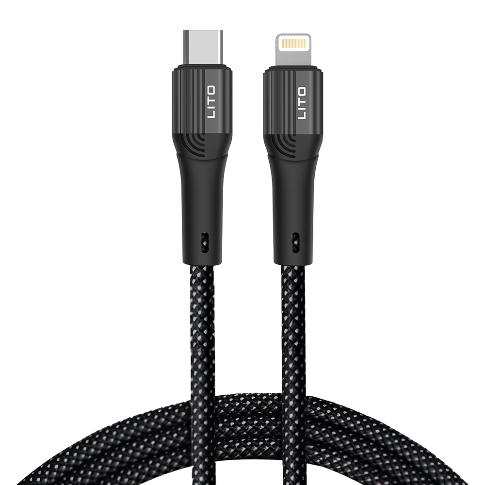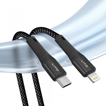 Design kabelu Lito LD14CL klade důraz na funkčnost a estetiku. Kabel je potažen pevným nylonovým opletem v černé barvě, který nejen skvěle vypadá, ale především chrání vnitřní vodiče před poškozením a zabraňuje nepříjemnému zamotávání. Konektory Type-C a Lightning jsou vyrobeny z vysoce kvalitní hliníkové slitiny s antioxidační úpravou, což zajišťuje stabilní a bezpečné připojení. Zesílené spoje mezi kabelem a konektory jsou navrženy tak, aby vydržely každodenní používání a minimalizovaly riziko prasknutí, což prodlužuje celkovou životnost produktu. Logo Lito decentně zdobí oba konektory, podtrhující prémiový charakter produktu.
