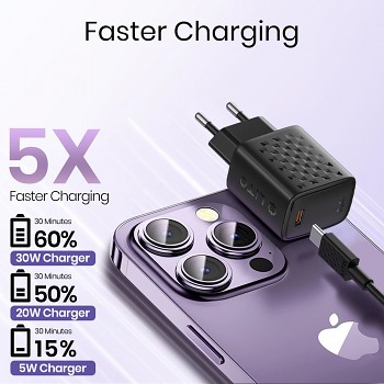 Lito Wall Charger LC17L s Lightning kabelem Type-C výstup PD30W GaN EU černáPředstavujeme Lito Wall Charger LC17L, špičkovou síťovou nabíječku, která kombinuje vysoký výkon, moderní technologie a elegantní design. Tato nabíječka je ideálním řešením pro rychlé a efektivní nabíjení vašich zařízení, a to vše v kompaktním provedení.