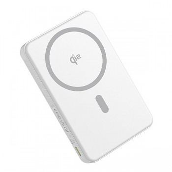Powerbanka Baseus Airpow II Qi2 se pyšní minimalistickým a elegantním designem v čistě bílém provedení. Její tělo má kompaktní obdélníkový tvar s měkce zaoblenými hranami, díky čemuž se pohodlně drží v ruce a snadno vklouzne do kapsy nebo kabelky. Na přední straně dominuje výrazný kruhový magnet, který zajišťuje přesné a pevné přichycení k vašemu telefonu. Na boku zařízení se nachází decentní tlačítko pro aktivaci a malý, ale přehledný digitální displej, který vás neustále informuje o zbývající kapacitě baterie. Na spodní hraně jsou umístěny porty USB-C a USB-A pro kabelové nabíjení. Celkové zpracování působí velmi moderně a kvalitně.