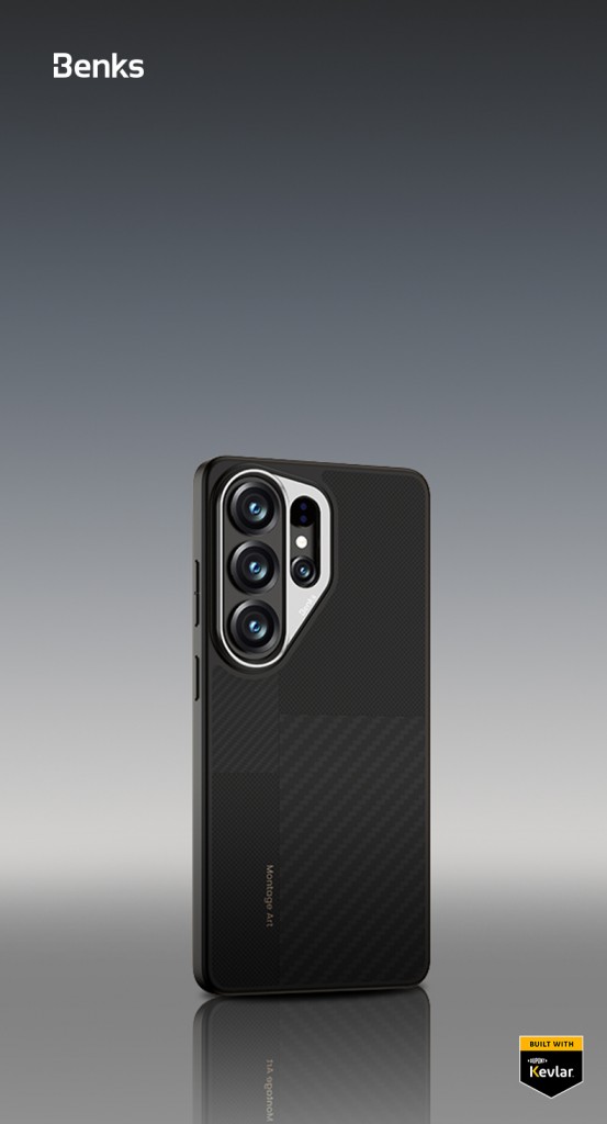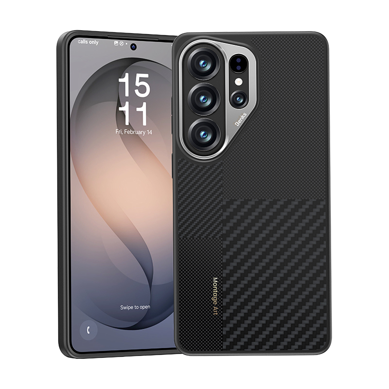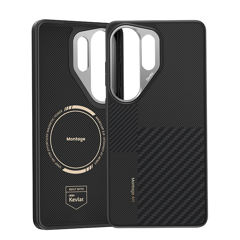 Magnetický kryt s kovovým rámečkem Benks Montage Armor Pro Kevlar 600D+1500D pro Samsung Galaxy S26 Ultra - černýDesign: Konstrukce sjednocuje moderní surový vzhled kevlarového materiálu se zakomponovaným kovovým rámečkem fotoaparátu. Komplexní textura dává pocit obrovské odolnosti a prémiovosti již na první pohled.