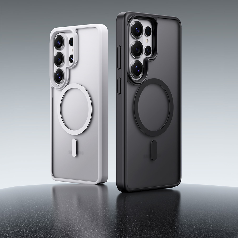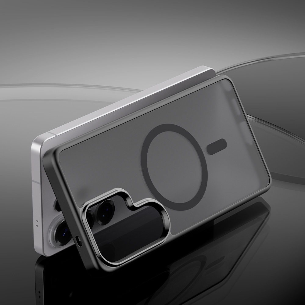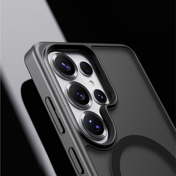 Magnetický matný kryt Rock Guard Touch Series pro Samsung Galaxy S26 Ultra - černýDesign: Elegantní matný povrch zadní strany dodává telefonu luxusní vzhled a zamezuje tvorbě otisků prstů. Tmavý design je doplněn jemnými texturami a výraznou ochranou čoček fotoaparátu.