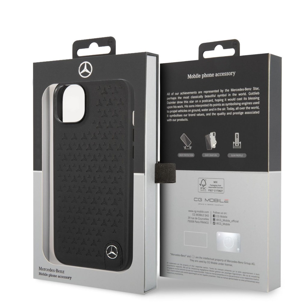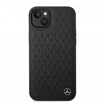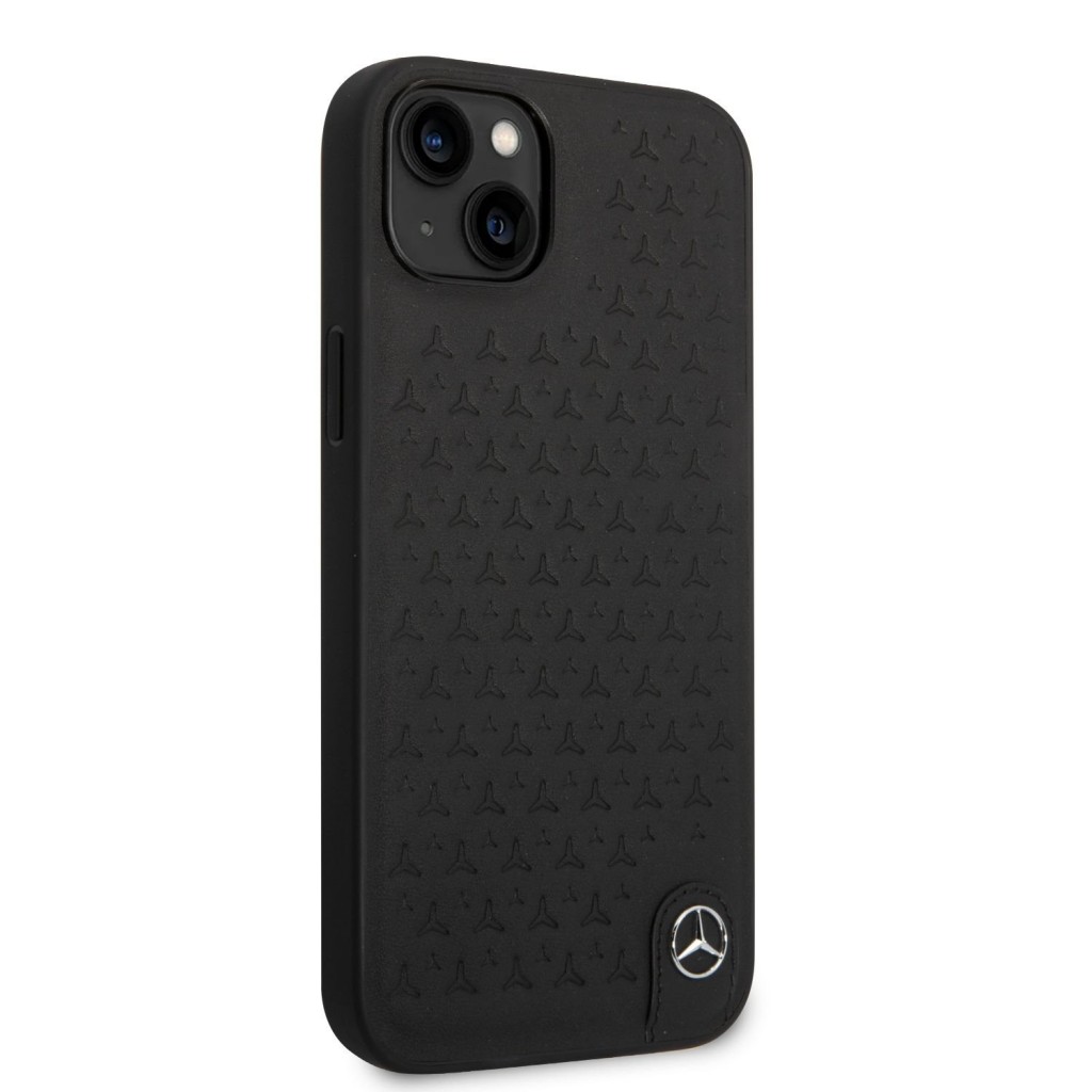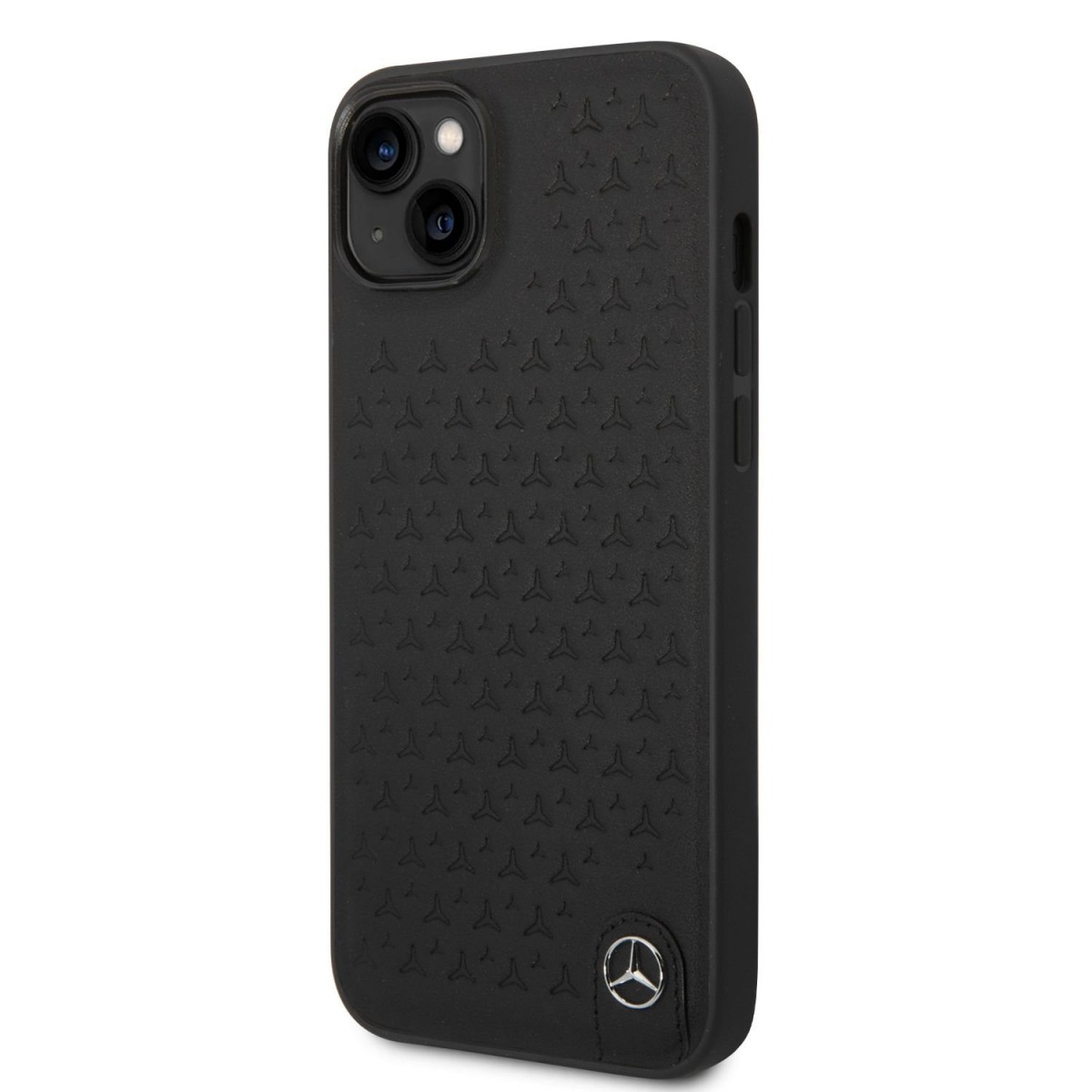 Mercedes Genuine Leather Star Zadní Kryt pro iPhone 14 Plus Black