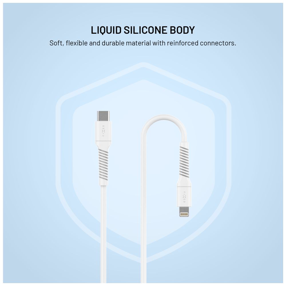Nabíjecí a datový Liquid silicone kabel FIXED s konektory USB-C/Lightning a podporou PD, 1.2m, USB 2.0, 60W, bílýPředstavujeme vám datový a nabíjecí kabel FIXED Liquid Silicone, který je ideálním a spolehlivým doplňkem pro všechna vaše Apple zařízení. Tento kabel byl navržen s důrazem na odolnost, funkčnost a elegantní design. Slouží nejen pro rychlé nabíjení vašeho iPhonu nebo iPadu, ale také pro bleskový přenos dat, jako jsou fotografie, hudba a další soubory.