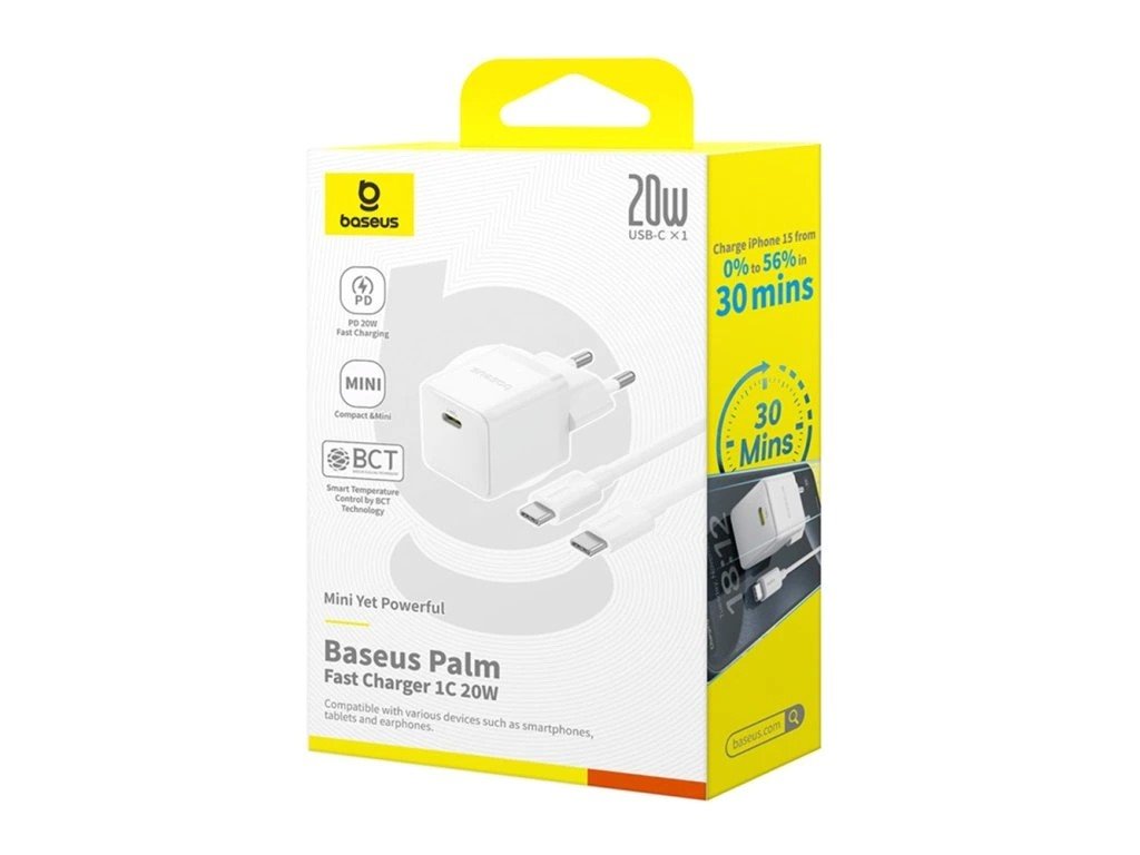 Nabíječka Baseus Palm Fast USB-C 20W + Datový Kabel USB-C/USB-C 1m WhiteMalá, ale neuvěřitelně výkonná. To je nabíječka Baseus Palm, která vám díky podpoře Power Delivery s výkonem 20 W bleskově nabije vaše zařízení. V balení naleznete i metrový USB-C kabel, takže můžete začít nabíjet ihned po rozbalení.