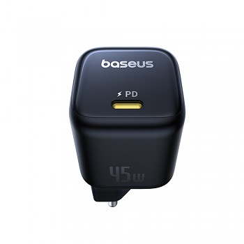 Nabíječka PicoGo 45W se pyšní minimalistickým a moderním designem. Její kompaktní, kvádrový tvar a matný povrch v kosmické černé barvě působí velmi sofistikovaně a diskrétně. Díky svým miniaturním rozměrům se snadno vejde do každé tašky či kapsy, což z ní činí ideálního společníka na cesty. Na těle nabíječky je decentně vyznačen výkon 45W a logo Baseus, zatímco jeden USB-C port je doplněn o žlutý indikátor Power Delivery (PD), signalizující aktivní rychlé nabíjení.
