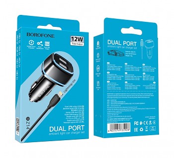 Nabíječka do auta Borofone BZ14 12W pro iPhone včetně datového kabelu Dual černá
